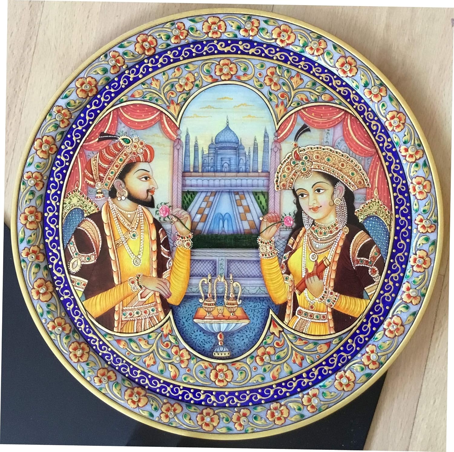 Amazon Com Shah Jahan Mumtaz Mahal 15 Marble Plate Art Handmade Mughal Miniature Painting Paintings