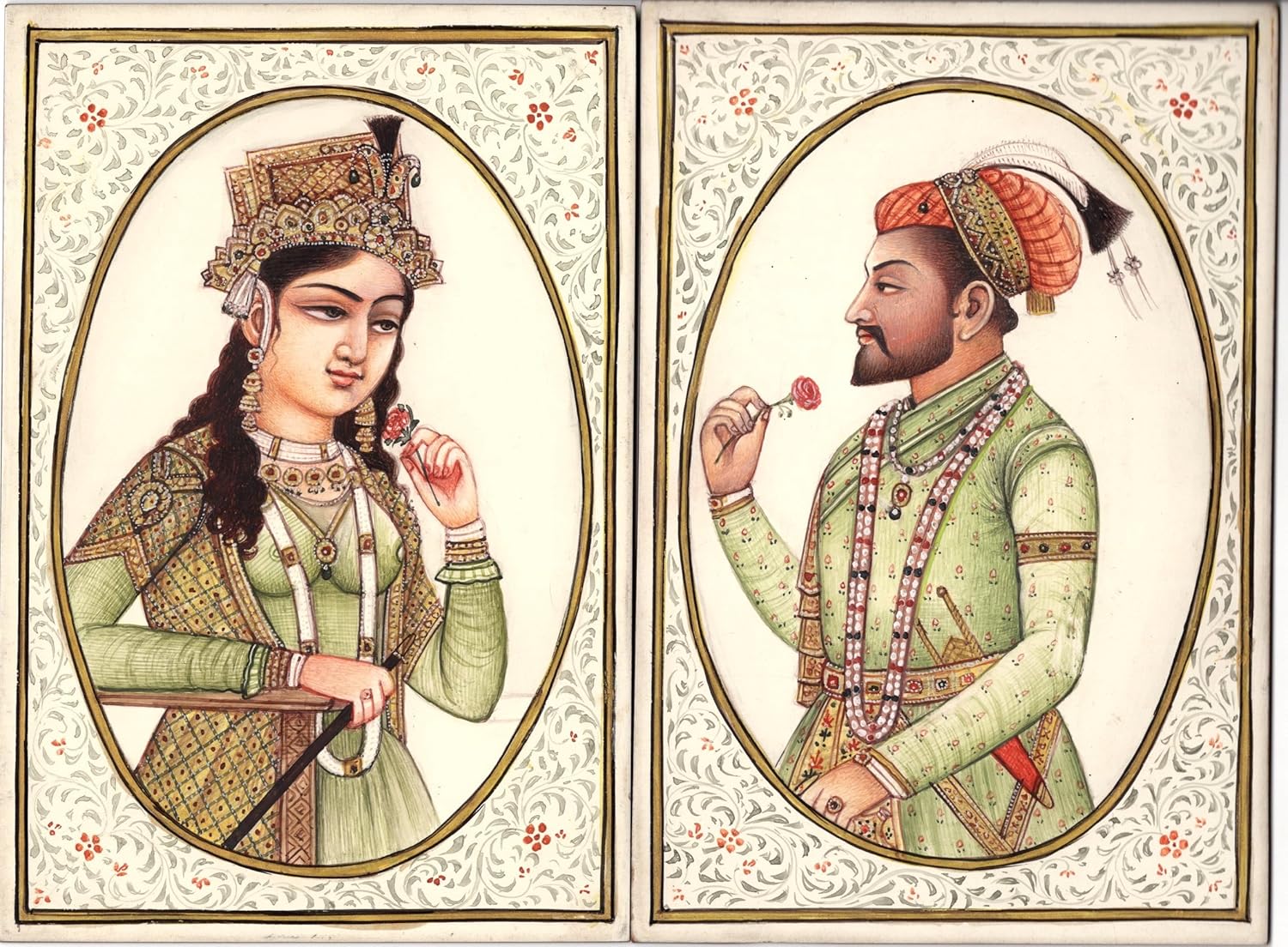 Amazon Com Mughal Painting Handmade Indian Royalty Portrait Art Shah Jahan Mumtaz Mahal Paintings