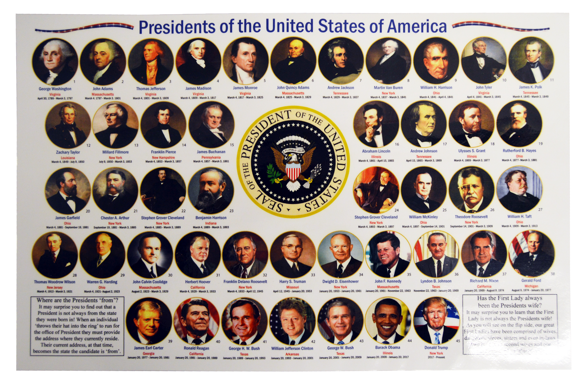 Amazon Com Usa Presidents Of The United States Of America Poster New Chart Laminated Classroom Landscape School Wall Decoration Learning History Flag Metal 15x20 Office Products