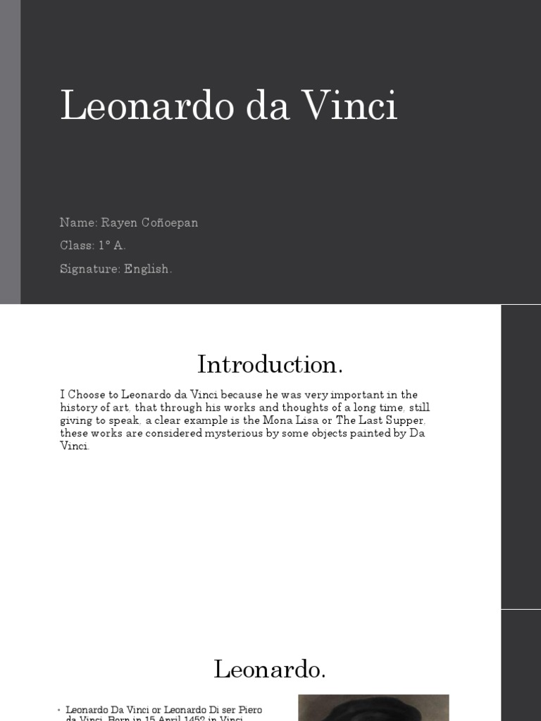 Leonardo Da Vinci The Brief Introduction About Leonardo